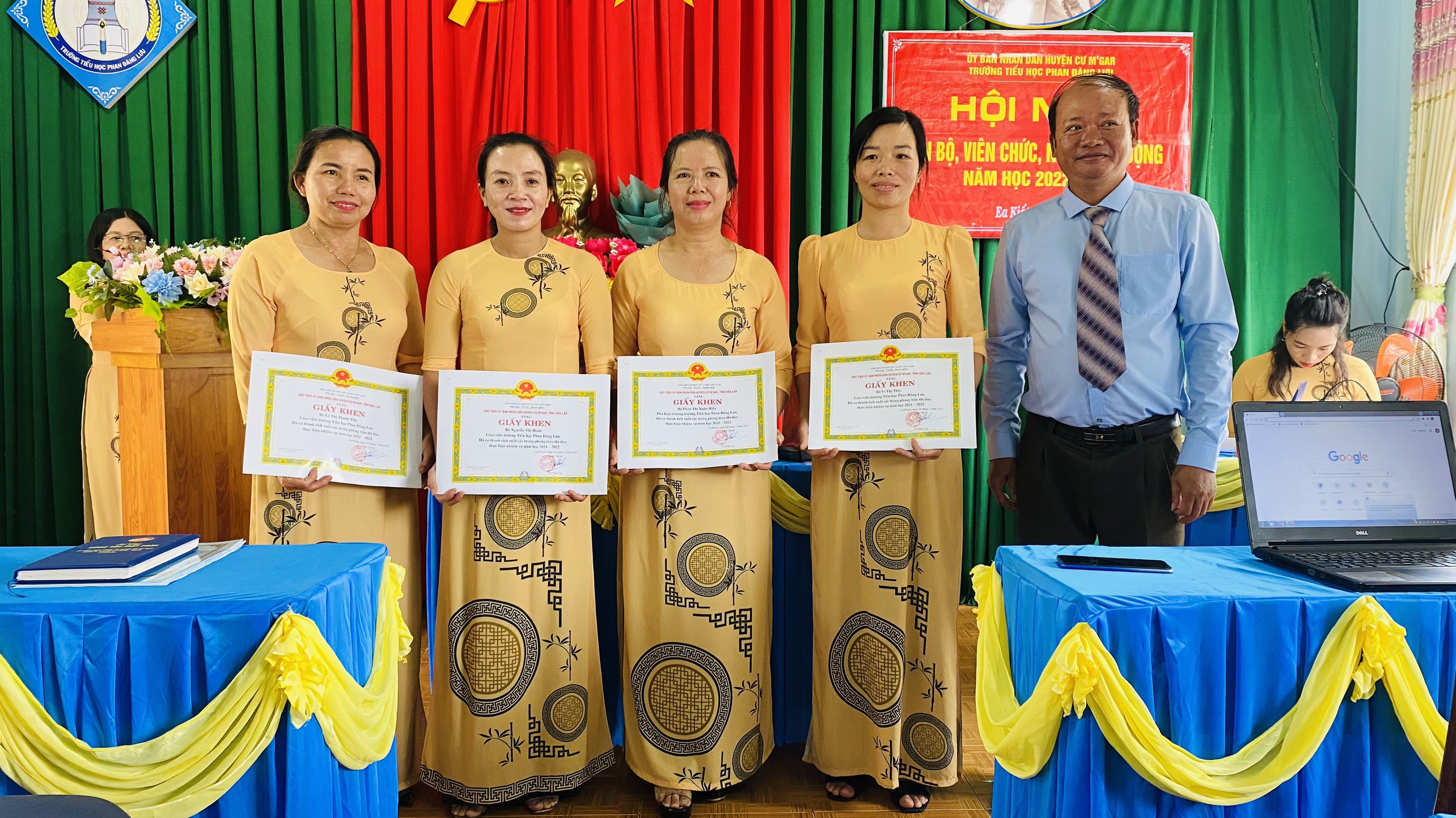 Năm học 2021-2022 là năm học toàn ngành Giáo dục và Đào tạo Phòng giáo dục huyện Cư M’gar thực hiện nhiệm vụ kép: vừa tích cực thực hiện các biện pháp phòng chống dịch Covid-19, vừa bảo đảm hoàn thành Chương trình giáo dục phổ thông cấp tiểu học phù hợp với tình hình dịch bệnh. Trường Tiểu học Phan Đăng Lưu đã thực hiện tốt công tác phòng dịch, huy động, duy trì 100% số trẻ trong độ tuổi đến trường. Chất lượng giáo dục toàn diện khá ổn định. Đội ngũ CBGV, NV tích cực học tập nâng cao năng lực ứng dụng CNTT, khai thác tài nguyên số phục vụ dạy học thích ứng với tình hình dịch bệnh. 04 đ/c hoàn thành xuất sắc nhiệm vụ được UBND Huyện tặng giấy khen. 26/27 cá nhân đạt LĐTT. Tập thể hoàn thành xuất sắc nhiệm vụ được UBND huyện công nhận và tặng giấy khen hoàn thành xuất sắc nhiệm vụ.
