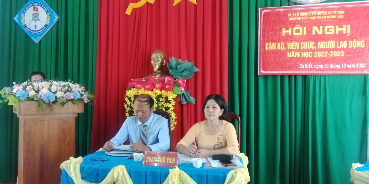 Thực hiện Công văn số: 134/ LĐLĐ ngày 15/09/2022 về việc phối hợp tổ chức Hội nghị Cán bộ, Viên chức, Người lao động năm học 2022 – 2023; Được sự chỉ đạo của Phòng Giáo dục và Đào tạo huyện Cư M’gar, ngày 19 tháng 10 năm 2022, Trường Tiểu học Phan Đăng Lưu tổ chức Hội nghị Cán bộ, Viên chức, Người lao động năm học 2022 – 2023.