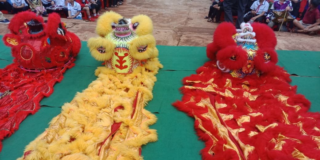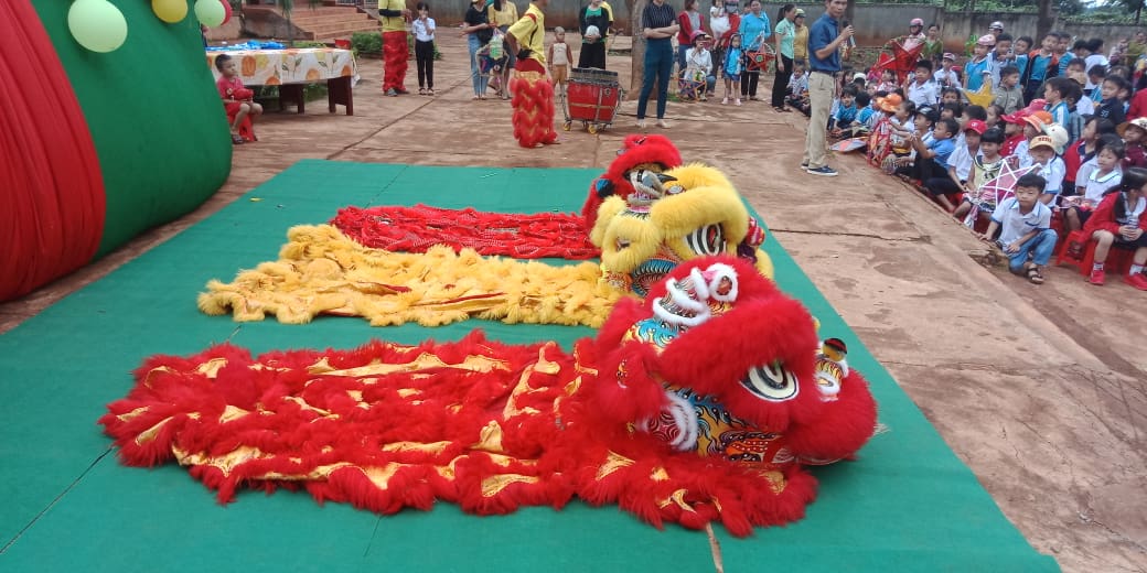 Tất cả các em ai nấy đều chăm chú xem Đội múa lân đang biểu diễn. Cái đầu “sư tử” luôn lức lắc theo nhịp trống, đôi chân nhanh nhẹn nhảy múa một cách tài tình. Cái thân hình con “sư tử” uốn lượn vô cùng khéo léo, khéo đến nỗi không ai ngờ rằng dưới cái thân hình oai hùng kia lại là một đứa trẻ nhỏ bé. Nhưng nhân vật khiến mọi người thích thú nhất là ông địa. Tấm thân phục phịch cử động một cách khó nhọc trong chiếc áo dài thùng thình với cái bụng to kềnh. Tay ông ta luôn quạt quạt vào đám người xung quanh. Ổng chạy lăng xăng khắp sân. Thỉnh thoảng lại lăn đùng ra làm mọi người cười rũ rượi. Ngày Tết mới vui làm sao. Ngày hội Trung Thu đã để lại cho các em nhiều kỉ niệm khó quên.