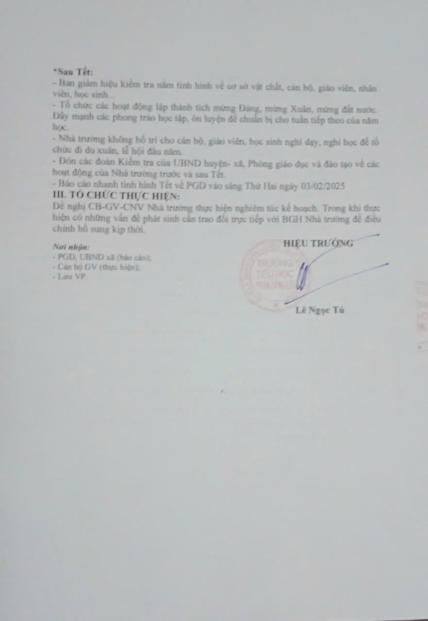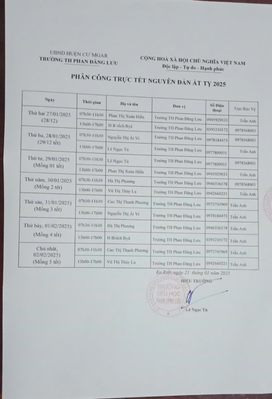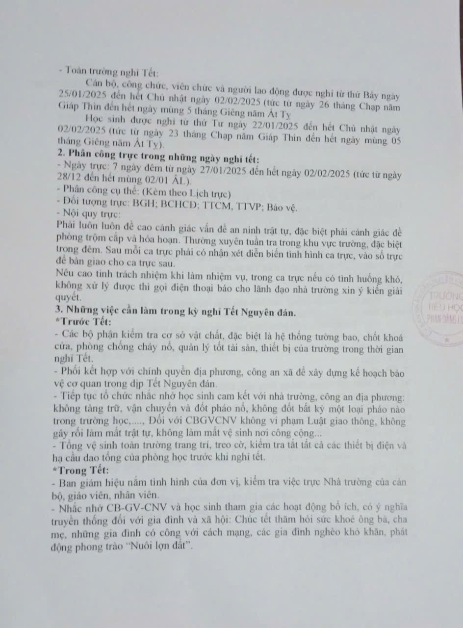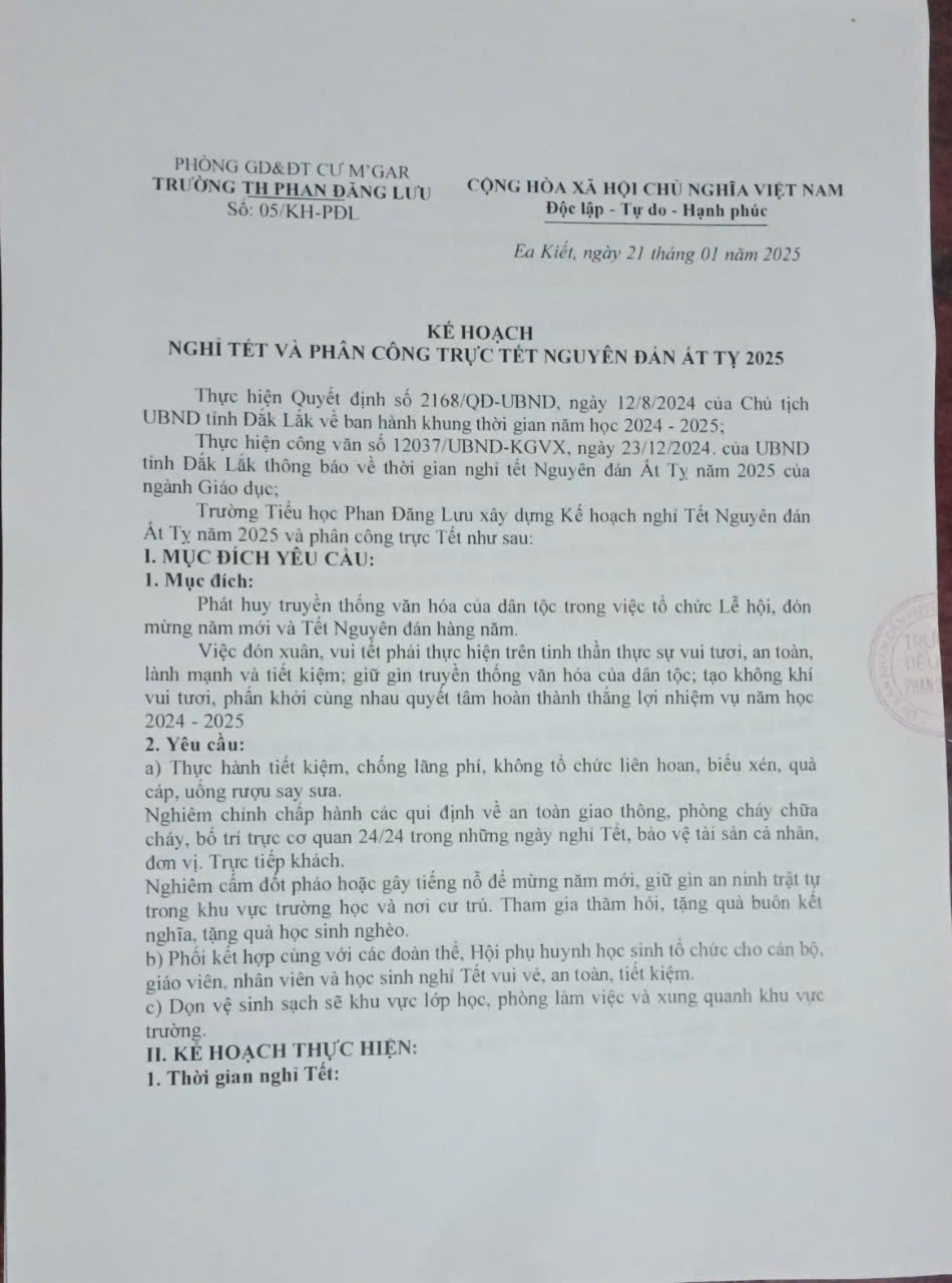 Kế hoạch nghỉ tết và trực tết Nguyên Đán Ất Tỵ 2025