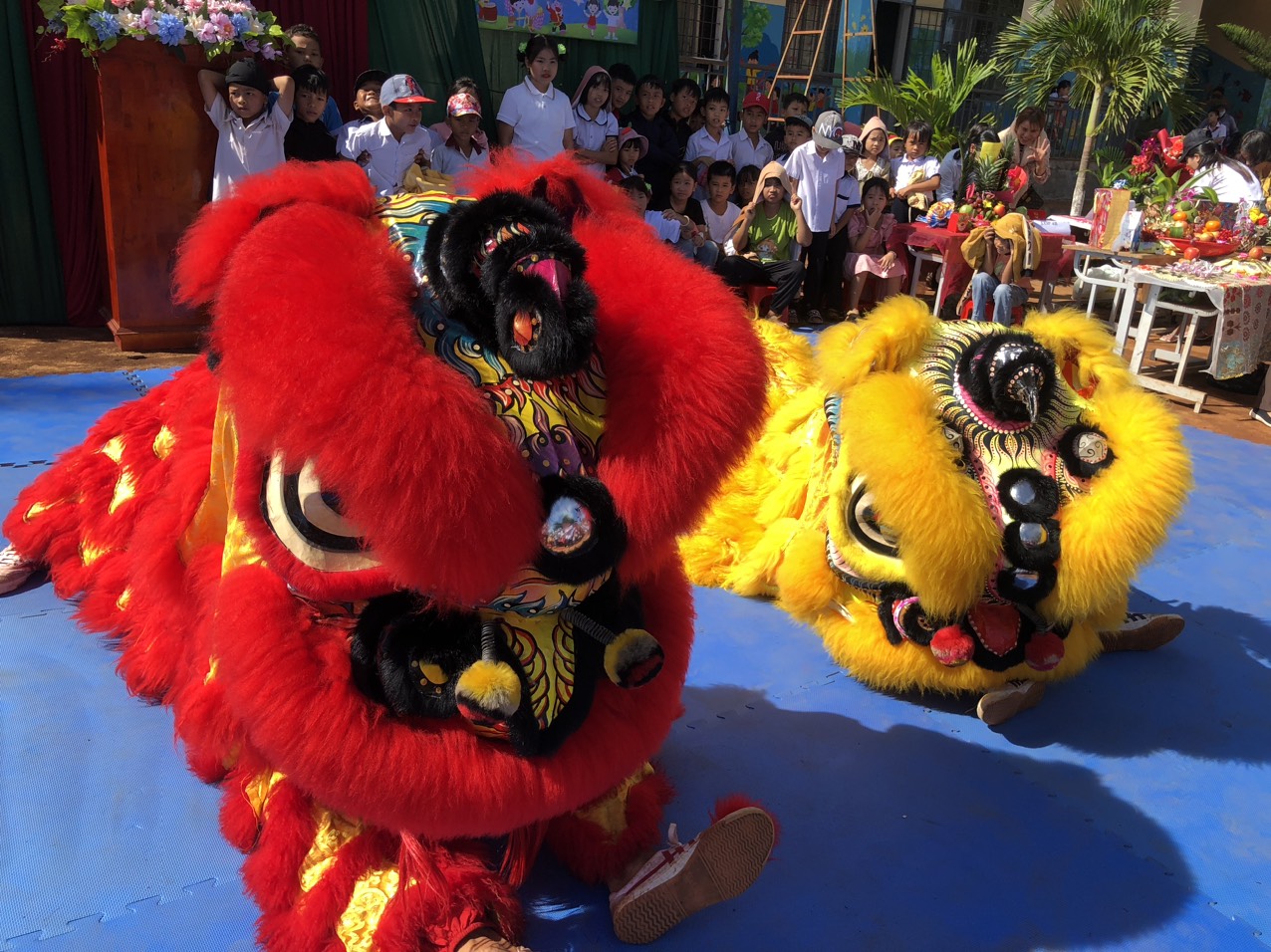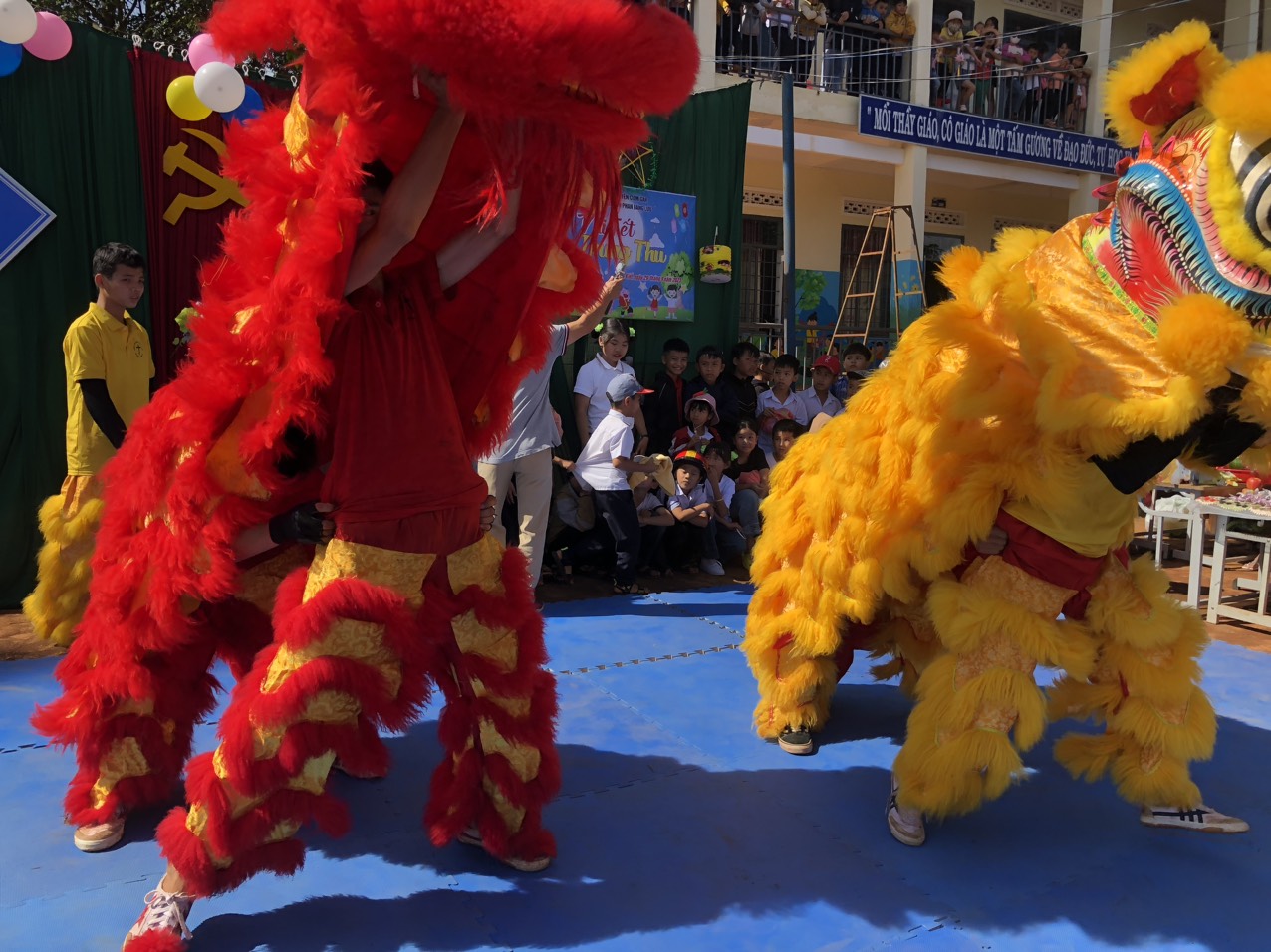 Trong không khí vui tươi của ngày hội, học sinh trong nhà trường đã thưởng thức những tiết mục văn nghệ vô cùng sôi động và cuốn hút do đội văn nghệ nhà trường thể hiện. Các em học sinh được xem tiết múc múa lân do các bạn ở nhà văn hóa thiếu nhi biểu diễn.