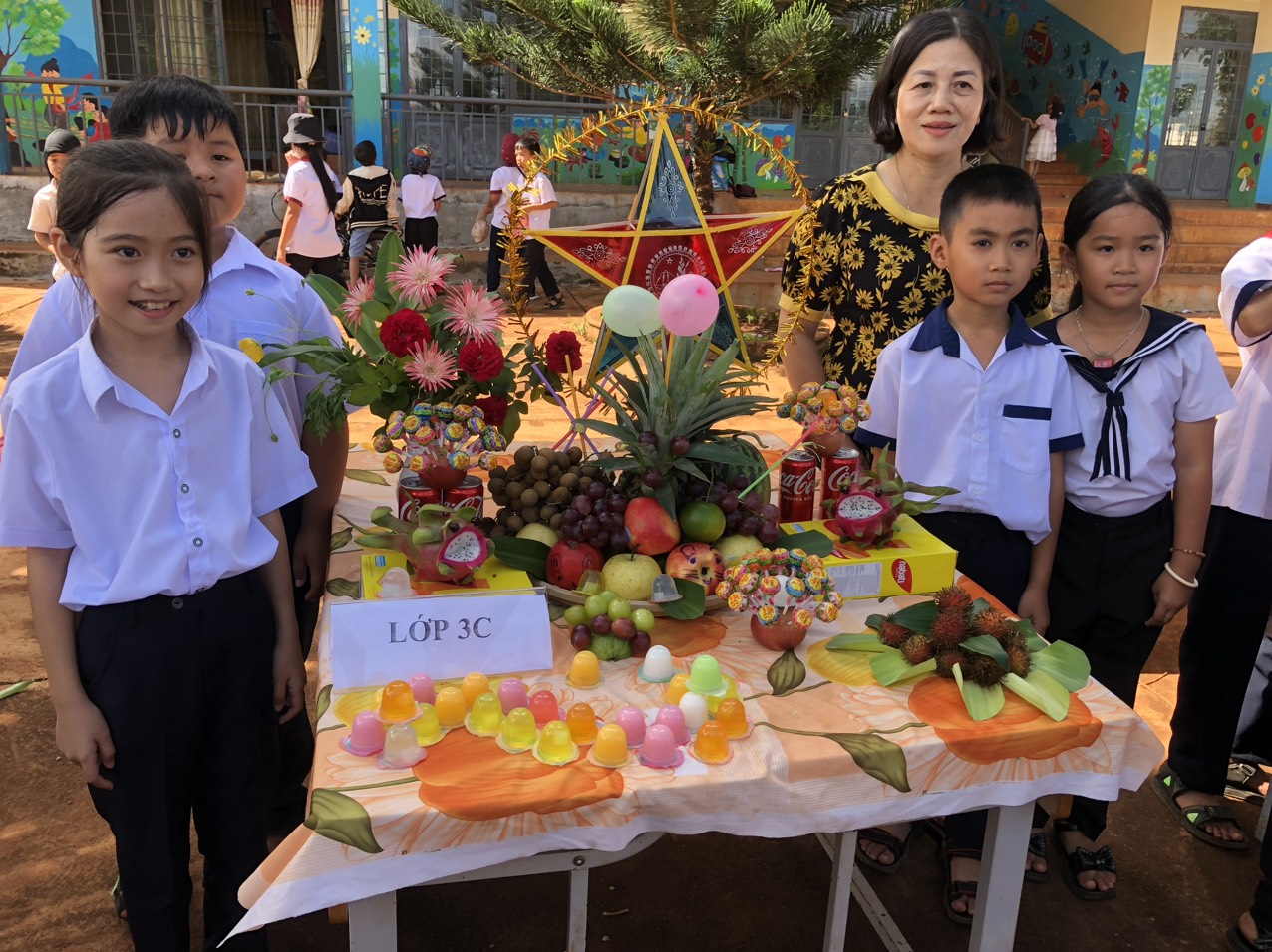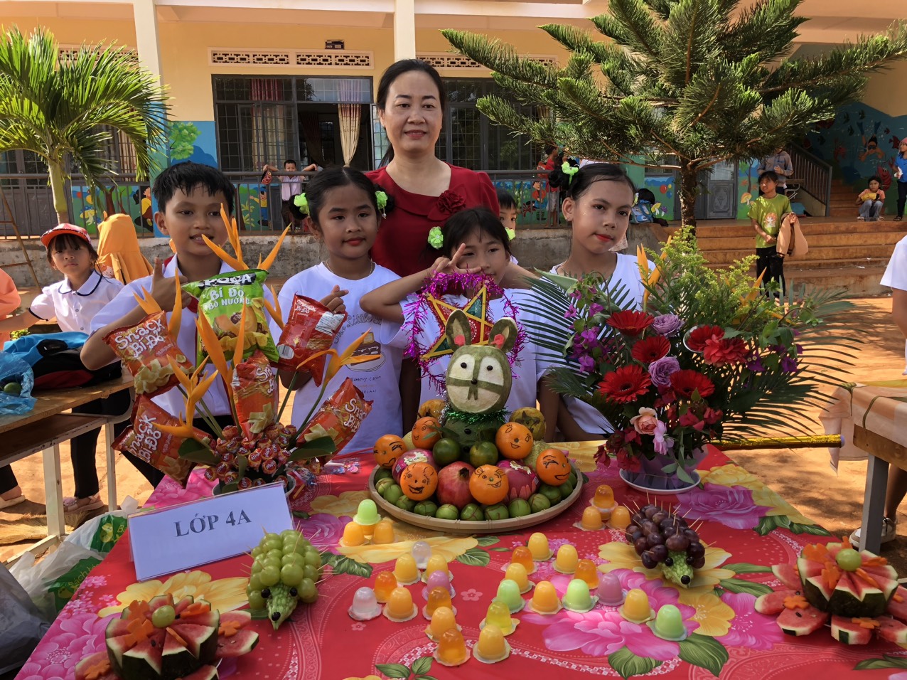 Trong dịp tết trung thu này, các em học sinh của các lớp không chỉ chuẩn bị các mâm cỗ trưng bày những sản vật của địa phương mà còn thể hiện sự khéo léo của đôi tay qua việc thiết kế những chiếc đèn ông sao, những con vật hết sức ngộ nghĩnh mang đậm màu sắc dân gian. Các bậc phụ huynh và học sinh cùng nhau trang trí và làm ra những mâm cỗ trung thu rất đẹp mắt,công phu và tỉ mỉ mang đậm phong cách riêng của từng lớp.Mỗi lớp một mâm cỗ lung linh sắc mầu rực rỡ.
