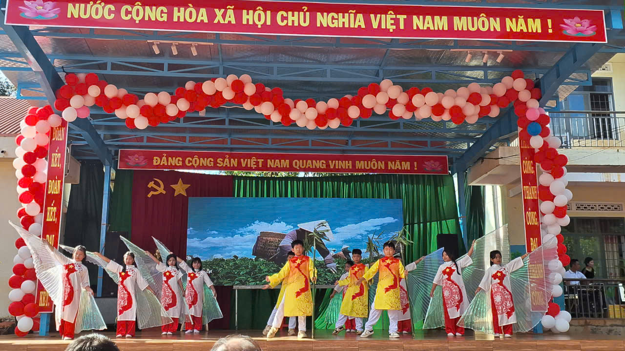 Mở đầu buổi Lễ đón bằng công nhận trường đạt chuẩn quốc gia mức độ 1 và Kỉ niệm 42 năm Ngày nhà giáo Việt Nam là chương trình văn nghệ đã được các em học sinh chuẩn bị kĩ lưỡng. Trên sân khấu là các diễn viên nhí được mở ra và phía dưới là những ánh mắt háo hức mong chờ của hàng trăm bạn học sinh thân yêu.
