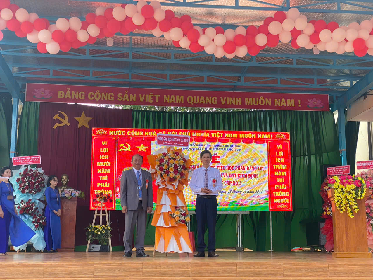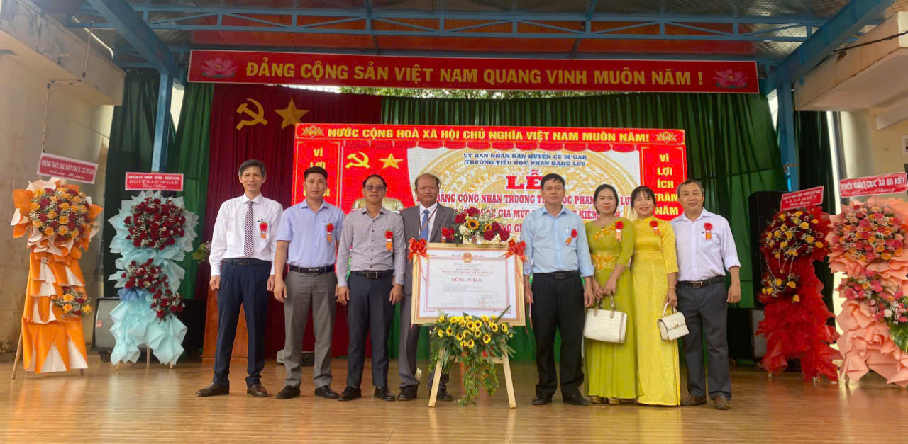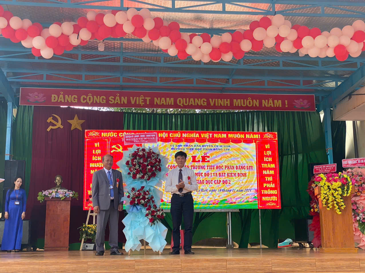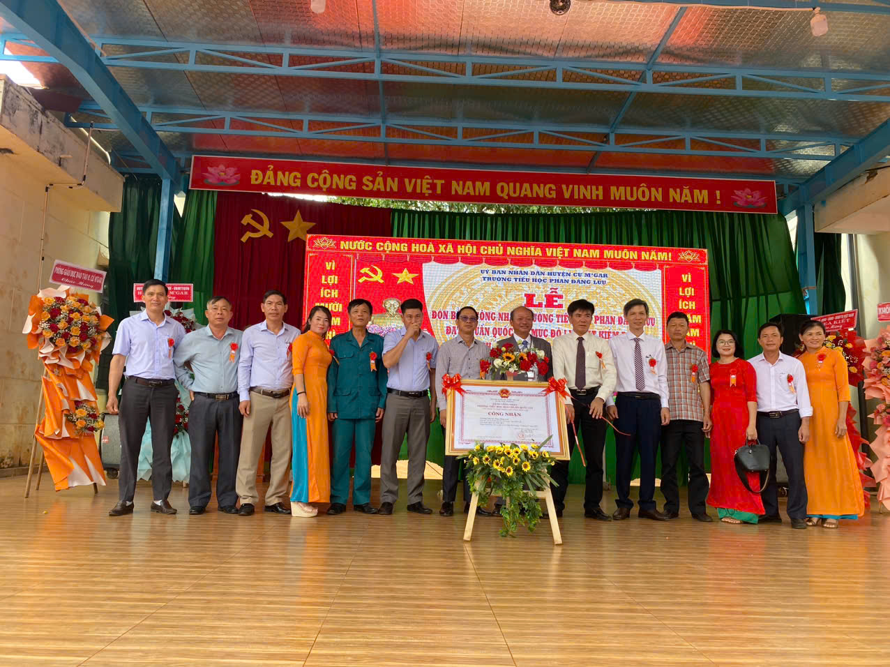 Tại buổi lễ, Thừa ủy quyền của Chủ tịch UBND tỉnh, ông Nguyễn Công Văn, Ủy viên Ban Thường vụ Huyện ủy, Phó Chủ tịch UBND huyện trao Bằng công nhận trường đạt chuẩn quốc gia mức độ 1 cho Trường tiểu học Phan Đăng Lưu xã Ea Kiết, huyện Cư M’gar, tỉnh Đắk Lắk.